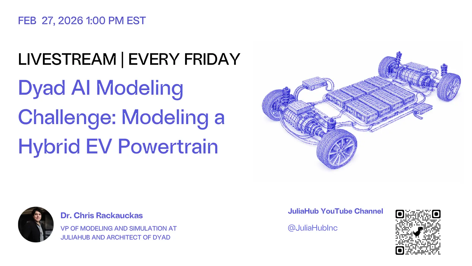 Join us for the Dyad Live Modeling Challenge—a weekly working session where engineers and scientists bring real modeling problems and solve them live. Each week, we take on complex systems using Dyad’s agentic AI to explore, simulate, and accelerate solutions. Whether you're facing a tough challenge or just eager to learn, this is your chance to see how real-time reasoning and AI-driven modeling come together.