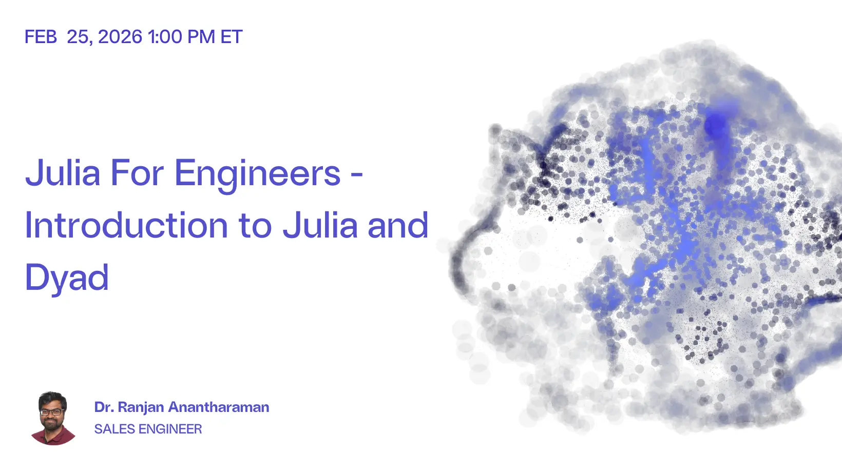 Dr. Ranjan Anantharaman is a Sales Engineer at JuliaHub Inc., where he helps engineering firms leverage Dyad, the company’s system simulation product. His background is in modeling and simulation and scientific machine learning, and he holds a PhD in Mathematics and Computational Science from MIT. He is an active member of the Julia community and has organized JuliaCon since 2020, chairing the conference from 2023 to 2025. He is also a member of AIAA and ASHRAE.